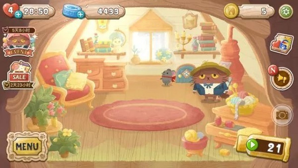 通过消消乐获得的金币,完成各项任务,就可以一步一步地让原本萧条的房间恢复成原来的样子了!