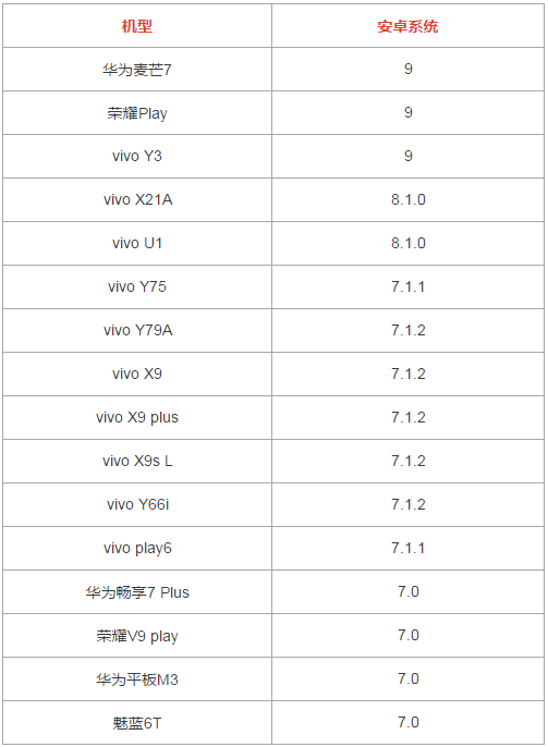 目前该问题常见于“安卓系统7.0及以上”的部分机型,例如以下机型: