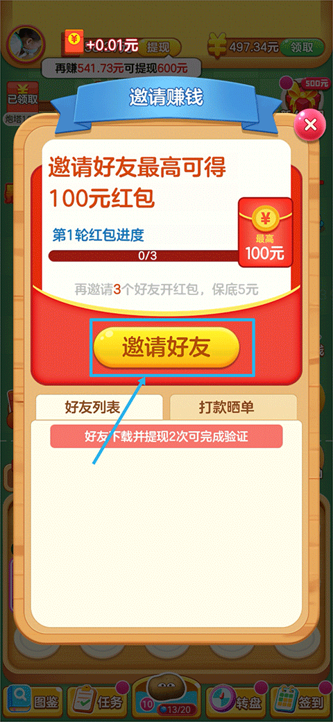 1、在游戏界面中点击邀请赚钱