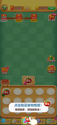 1、进入游戏后,第一步是点击下方的购买食物炮塔。要知道,炮塔数量越多,你的领地就会越安全。