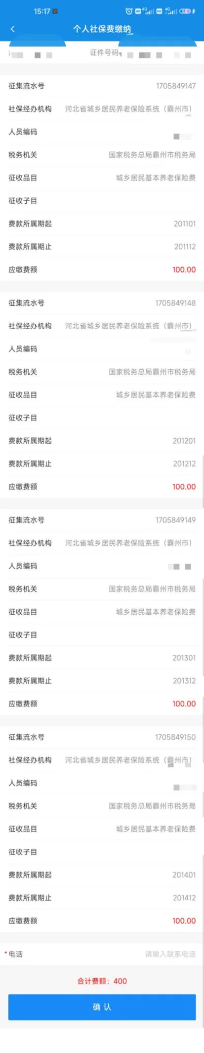 选择【核定申报】后,系统会带出该缴费人的核定信息,核对缴费金额无误后,直接点击“确认”提交缴费信息。