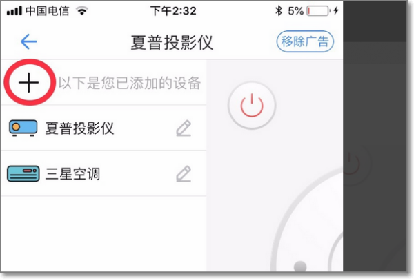 3、开启 app 并进入主界面。位于左上方的按钮,能用于添加或切换电器设备。特别注意!要是你是首次使用该 app ,那么可直接选择电器类型,也就是直接进入第四步。