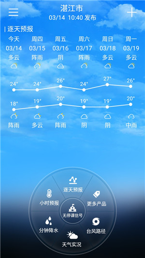 4、提供全新的时间断天气线上功能,各个时间段的天气变化都能轻松知晓;