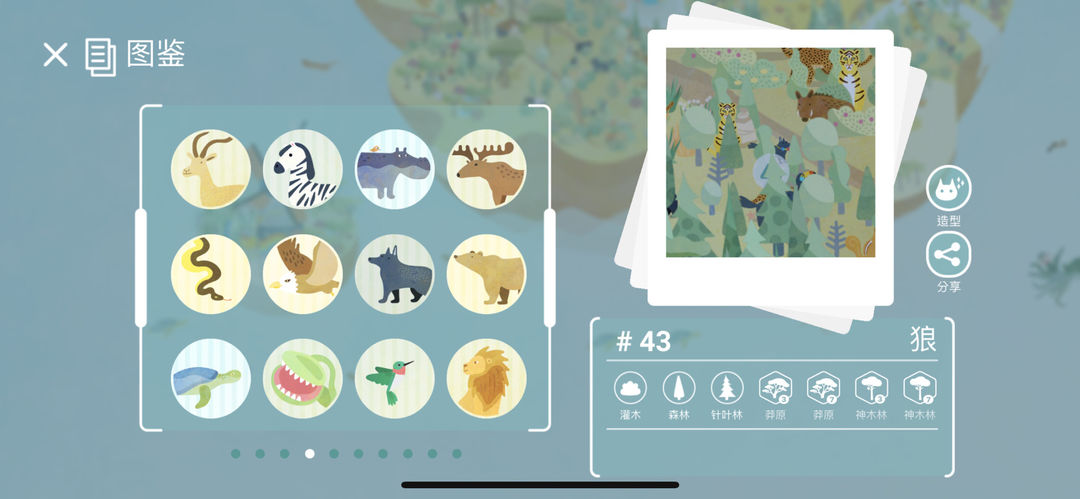 需要一定数量的森林覆盖率。至少森林里的动物都要开启图鉴。