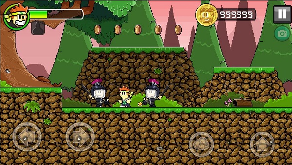 最上方是特殊武器攻击,左下方是普通攻击,右下方是跳跃。