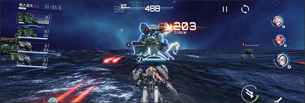 机甲设计细节丰富精致。战斗中依然保持精致3D形象,不会变成Q版机甲,所见即所得!战斗画面与立绘不割裂。战斗中强烈打击感和冲击性技能演绎,带你重新找回机甲战斗的热血!