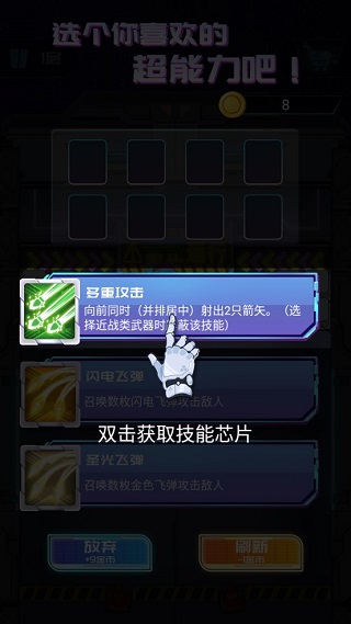 3、当成功通关或者实现升级时,能够获取技能芯片。只是技能芯片是以随机方式刷出的,通过合理组合这些芯片,便能发挥出最强的战斗能力。