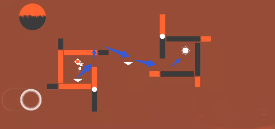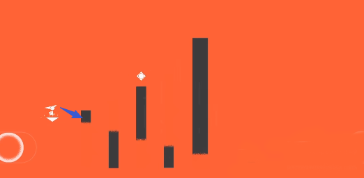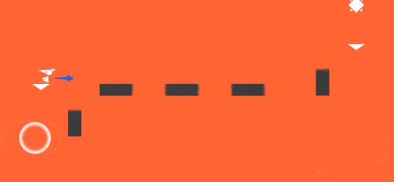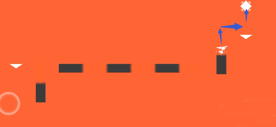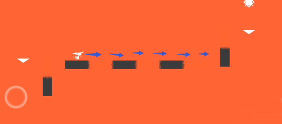 1、向前跳之后会站到右侧下方的红色方块上,然后向右侧移动。