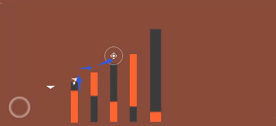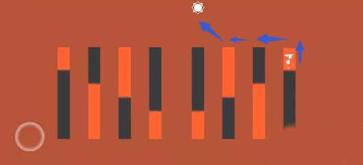 4、然后我们向上跳触碰机关,之后需要原路返回,只不过这次的阶梯变成竖着的了。