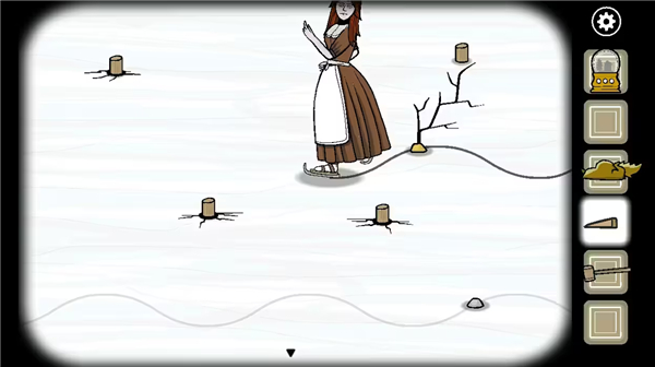 顺着裂缝来到左边,点击湖面上的冰块出现弟弟