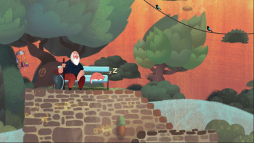 3、前往椅子处:只需直接点击远处的房子,老人便会自行寻路,跨越一个个山谷,来到房子前的椅子上坐下。