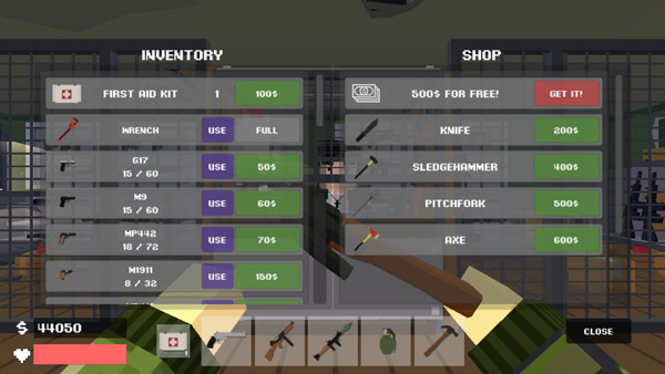 新手的话,我建议去第一关打两次。等拿到1000块后,就前往第二关。到了第二关,先上沙发攒钱,接着先制作消防斧,之后再制作图中所示的这把枪。要是解锁第四关时给了钱但门却打不开,那就退出去重新登录,再购买开门就行。顺便补充一点,到了后面关卡,特别是第四关,千万不要作死下来。