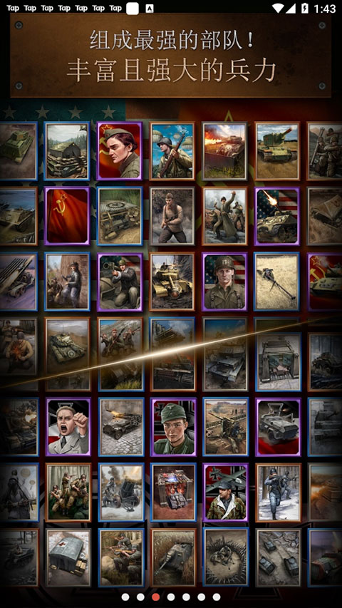 2、透过考证真实呈现的步兵、车辆、战车、建筑物等多样兵种的兵力,组成最强的部队以争取胜利。其中还有模拟真实人物的战争英雄。