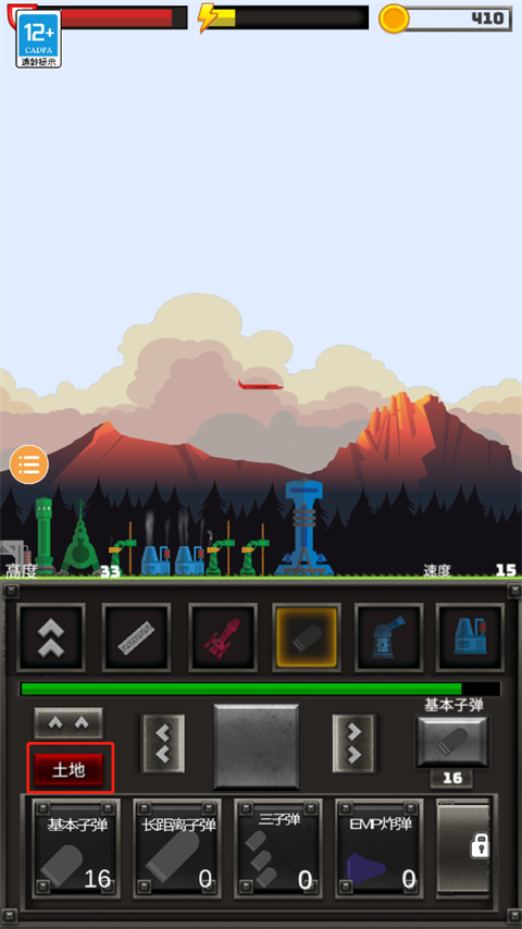 7、需要降落即可点击左边的土地即可降落;