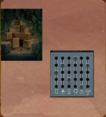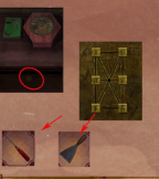 32、轻点写字台的抽屉,依据此前获取的线索——墙面上水流所形成几何图形与符号的对应关系,把机关滑块调节至正确位置,此时抽屉会向下滑出,从而得到道具:螺丝刀与铲刀。