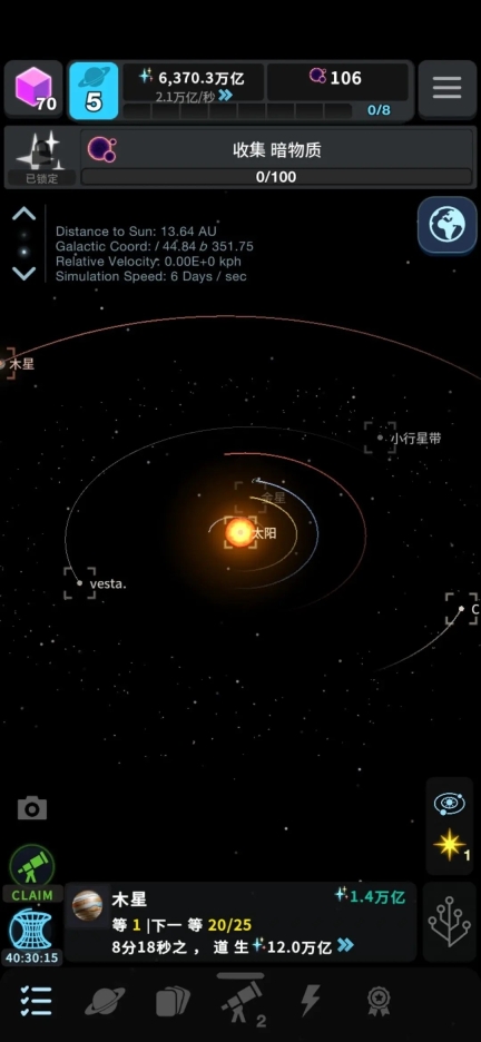3、如果找不到金色小行星,就把界面调整到一堆星球的场景,然后放大缩小,会定期刷新的