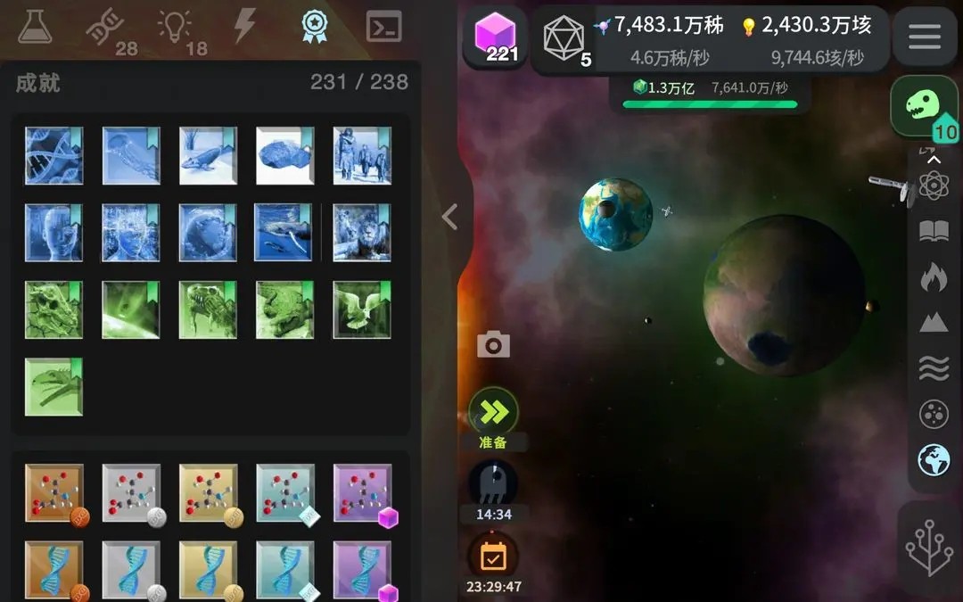 开启重置模拟功能。需先解锁生物,接着同时对研究栏、生物栏、文明栏进行升级,之后点击最上方的框,即可进入重置模拟的界面。完成重置后,要确保批量升级生物以及时代推进,在5分钟内抵达奇点。