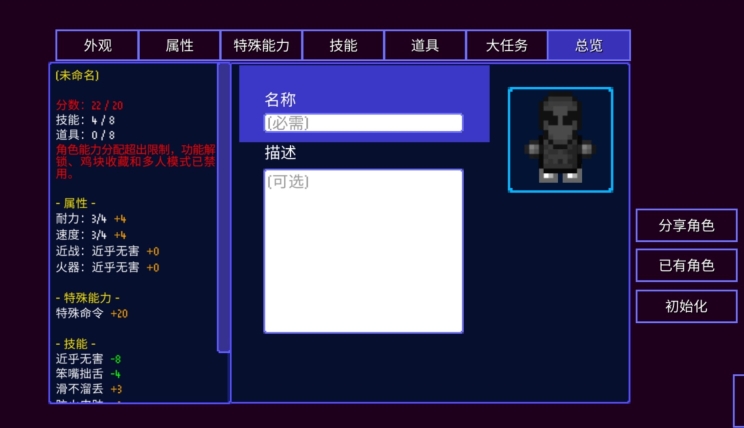 外星人所占的点数也是较高的,超出了2点,仅仅特殊能力所占的点数就达到了20点,可以说是全游戏最“贵”的技能了,另外近乎无害和笨嘴拙舌也是为我们减出了很多点数,让我们有了更多的选择空间。