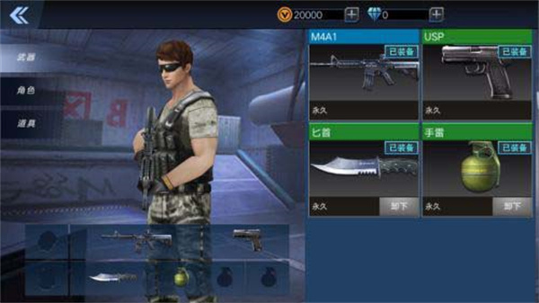 6、在商城可以通过积累的金币或钻石购买武器,购买武器可以通过对比看哪种武器基础属性,弹匣最厉害,还有角色,道具可以购买选择。