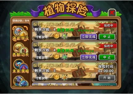 接下来大家应该过了神秘埃及第九天了吧?在这一天过完之后会开启卷心菜投手的植物探险,每次两个小时,每天可以探险五次。意思就是说,每天大家只要花10个小时探险就可以在42天获得5阶卷心菜了。