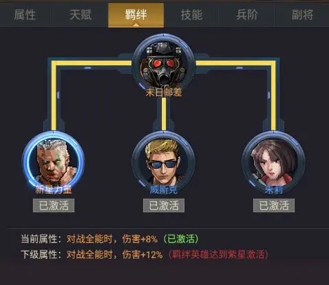 羁绊:英雄之间的相互羁绊加成,当拥有羁绊关系的英雄后即可激活加成属性;