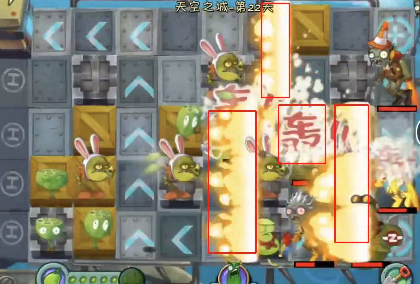 3、当豌豆数量较少且对应路线暂无僵尸时,可暂不放置豌豆。喷火豌豆有一定几率喷出多个豌豆进行攻击,因此,只需一到两个豌豆,便能守住前几波僵尸的进攻。至于多余的豌豆,可待后续几波,根据实际情况再决定放置位置。一旦放置失误,很可能致使该路线防线崩塌。