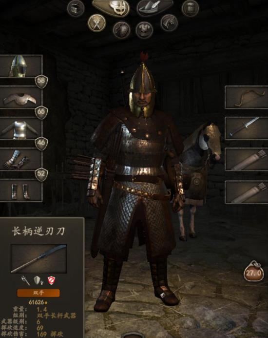 护具主要划分为头盔、铠甲、靴子以及手套这四大类。任何一件护甲都会使累赘度上升,而累赘度会对人和战马的奔跑速度以及跳跃表现产生影响。护甲所防护的部位涵盖头部、身体和腿部。护甲自身的关键属性是防御力,其作用在于减轻挥砍类伤害。有部分护甲存在最低力量要求,要是力量未能达到对应的标准,便无法穿戴该装备。
