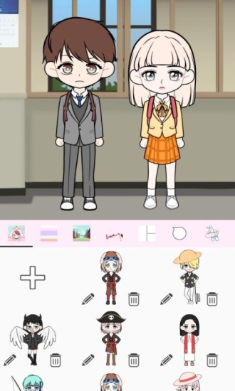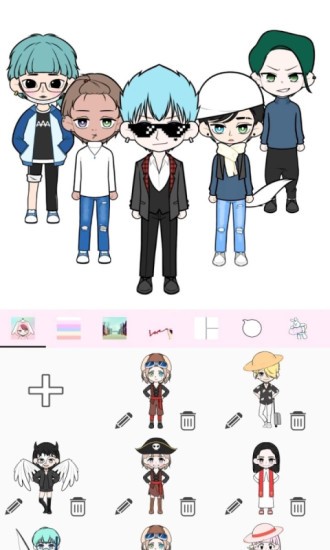 2. 挑选几个动漫人物放置好,为他们进行装扮,接着用心为他们创作一个故事,同时给他们取上名字。