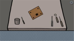 6、之后如图点击桌面上的物品,下方对话框中负面的话不要点击。