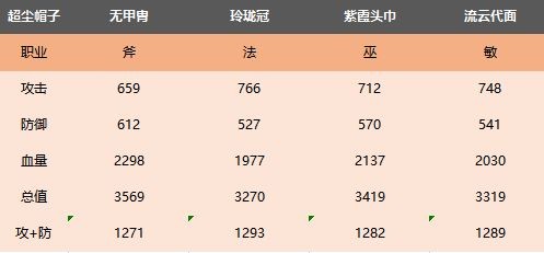 b、同品质条件下,不同职业的同类装备,属性上配比略有不同,但攻防总值趋近相同