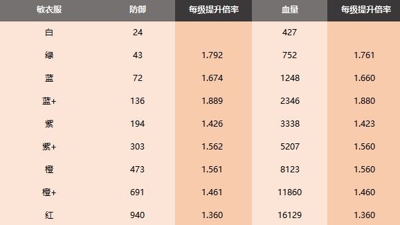 以【敏衣服】为参考,1个红装属性等于其他品质下,几倍装备属性呢?