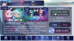 在这个小游戏中Lemo和Yuni两人会以一组舞步来示意接下来要求让玩家输入的箭头(两侧,上下左右)。