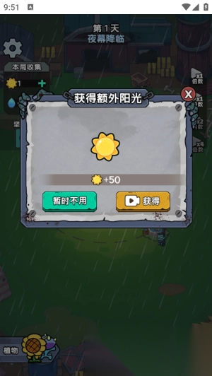 2. 当夜幕降临,僵尸群便会对基地发起袭击。玩家需在限定时间内,尽可能多地积攒阳光,从而为防守工作做好全方位的充分准备。