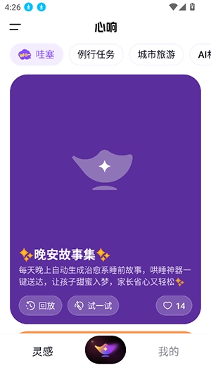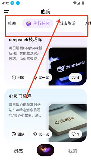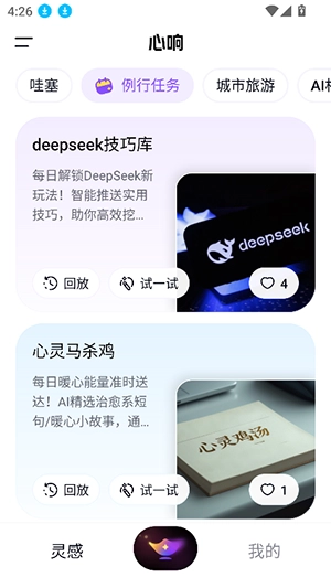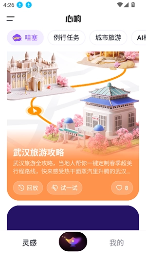 1、进入心响ai首页,提供哇塞,执行任务,城市旅行,ai相亲,智慧图标等多个板块的ai功能。