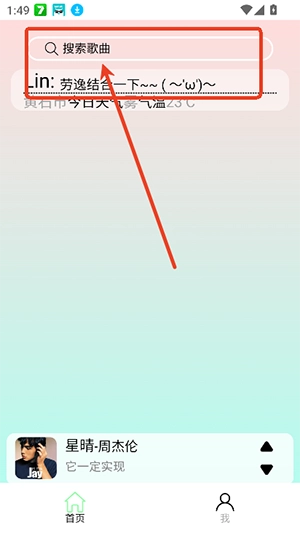 1、点击首页上方的搜索框,输入想听的歌曲或者歌手名字。