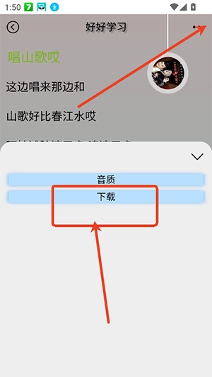 4、或者点击右上角三点,点击下载即可,下载音乐到本地。