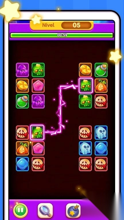 1. 玩家需在杂乱无序排列的图案里,找出两个一样的万圣节元素,然后将它们连接起来以实现消除。