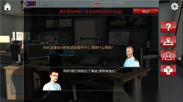 1、在本站下载并安装好Notruf112上海模组手机版的中文版,安装完成后打开进入游戏,此时会接到市民打来电话,举报某个区域发生了火灾。