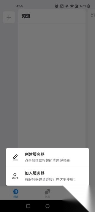 1. 当通过手机号注册登录并进入主页面后,能够选择创建服务器,也可以选择加入服务器。