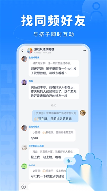 自定义热门话题,支持通过发送图片、语音、小视频、表情包,与志趣相投的伙伴们实时畅所欲言。