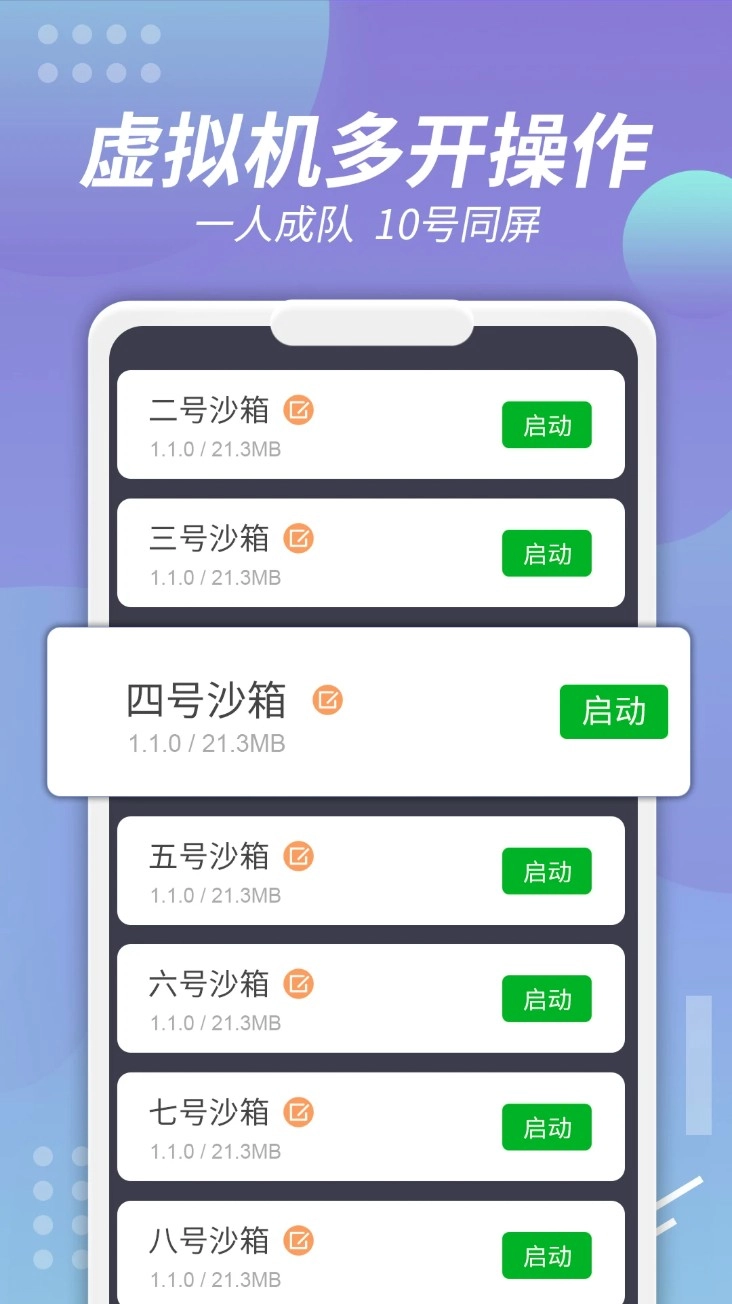 1. 进入沙箱主页面后可创建多个分身沙箱,点击对应序号的「启动」按钮,即可开启独立虚拟环境。