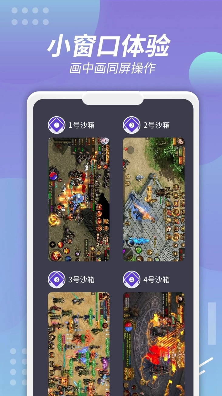 2. 启动多个沙箱后可开启「小窗模式」,同时显示多个运行界面,支持画中画进行同步操作。