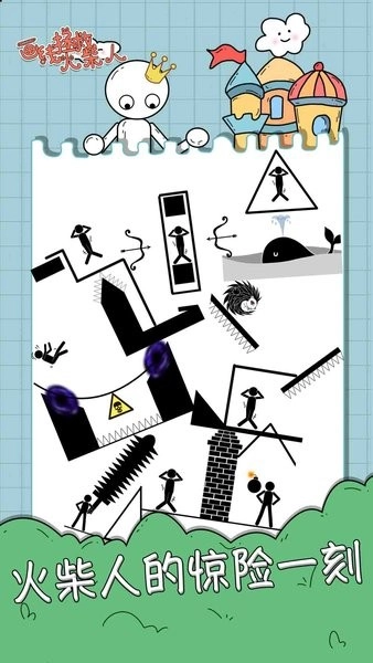 3、游戏玩家通过画线来抵挡武器与危险。只需用你的手划线,拯救火柴人。
