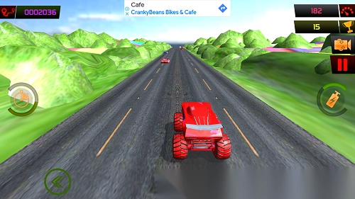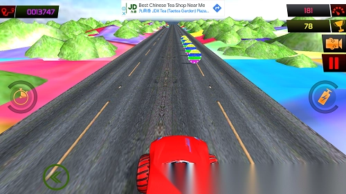 7. 右侧的按钮能够实现短暂加速,在此过程中可收集沿途的金币,并避开其他车辆。