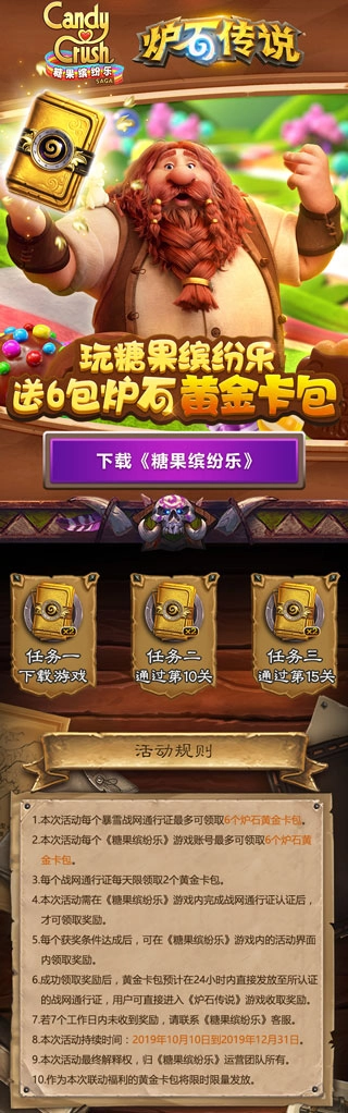 2. 在本次活动中,每个《糖果冰纷乐》游戏账号领取炉石黄金卡包的上限为6个。