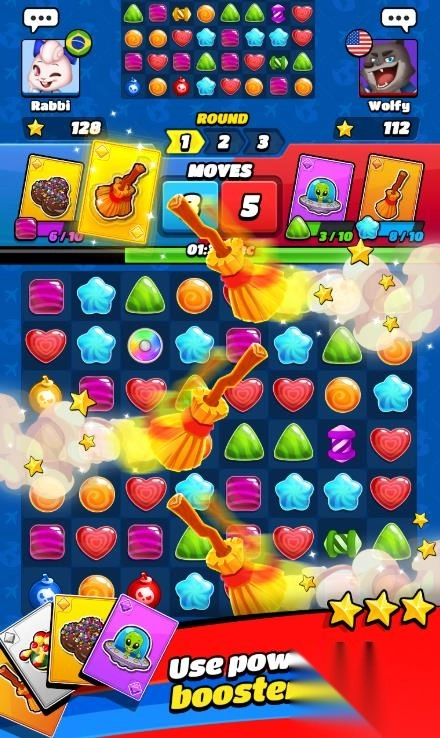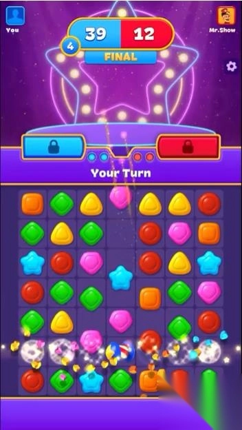 在这里,不再是单机闯关,而是进入一个快节奏、实时匹配的PVP世界——你将面对来自世界各地的对手,展开一场智慧与手速的比拼。在比赛中,你需要迅速识别棋盘上的最佳消除组合,使用策略安排每一步,同时密切关注对手的动作:TA用什么助推器?得分是否超越你?每一次连击、每一个强化道具的使用,都可能左右最终胜负。你不仅要快,更要准,才能成为排行榜顶尖的三消大师。
