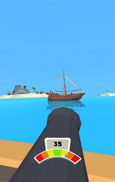 2、观察右侧力度条调整炮弹发射强度,结合风向和距离预判弹道轨迹,确保炮弹能精准命中敌方船只。