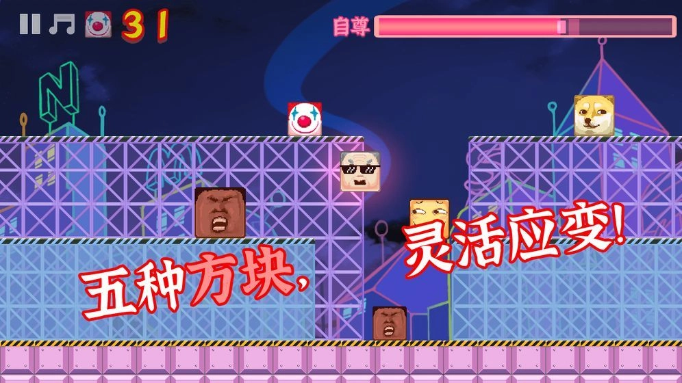 以像素风格呈现,人物皆为方形模样,随后开启一场如梦似幻的旅程,去寻觅身旁的小丑。