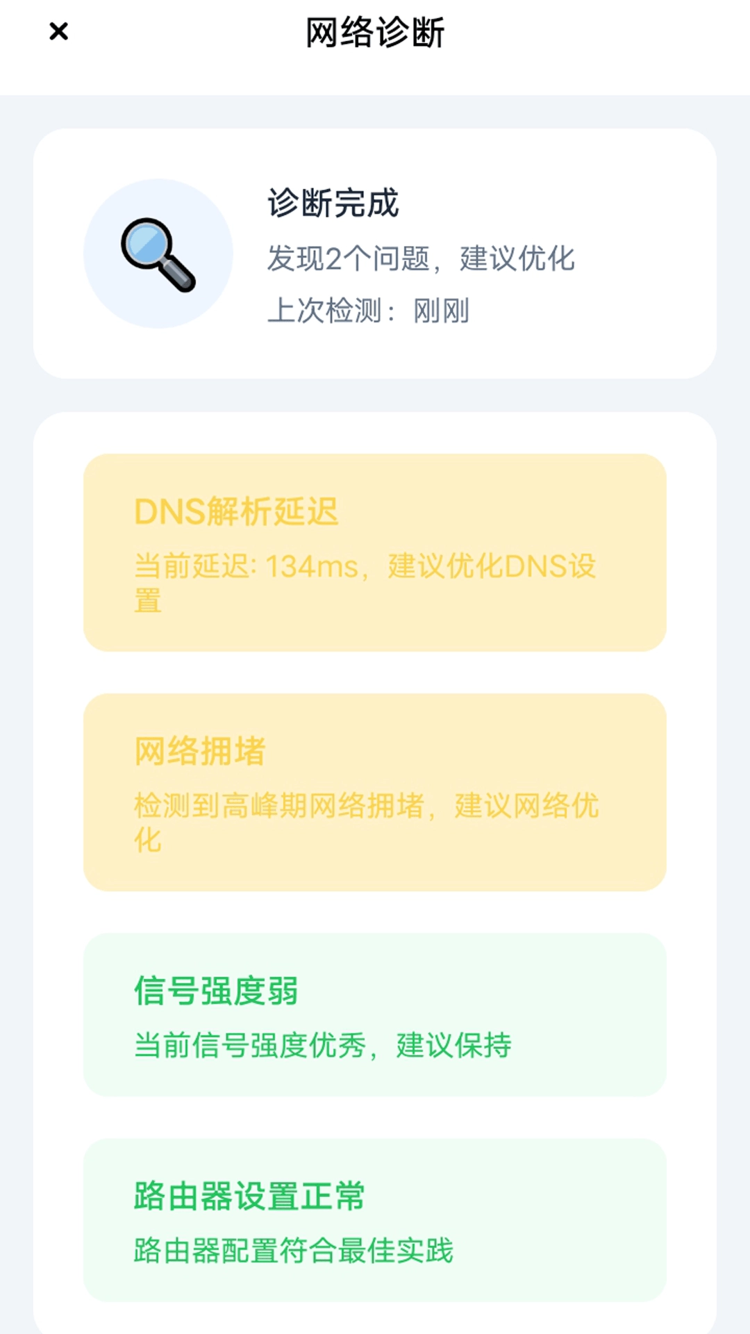 3. 智能优化功能,可自动对网络状况进行检测,并智能优化网络连接,全力保障网络始终保持畅通状态。