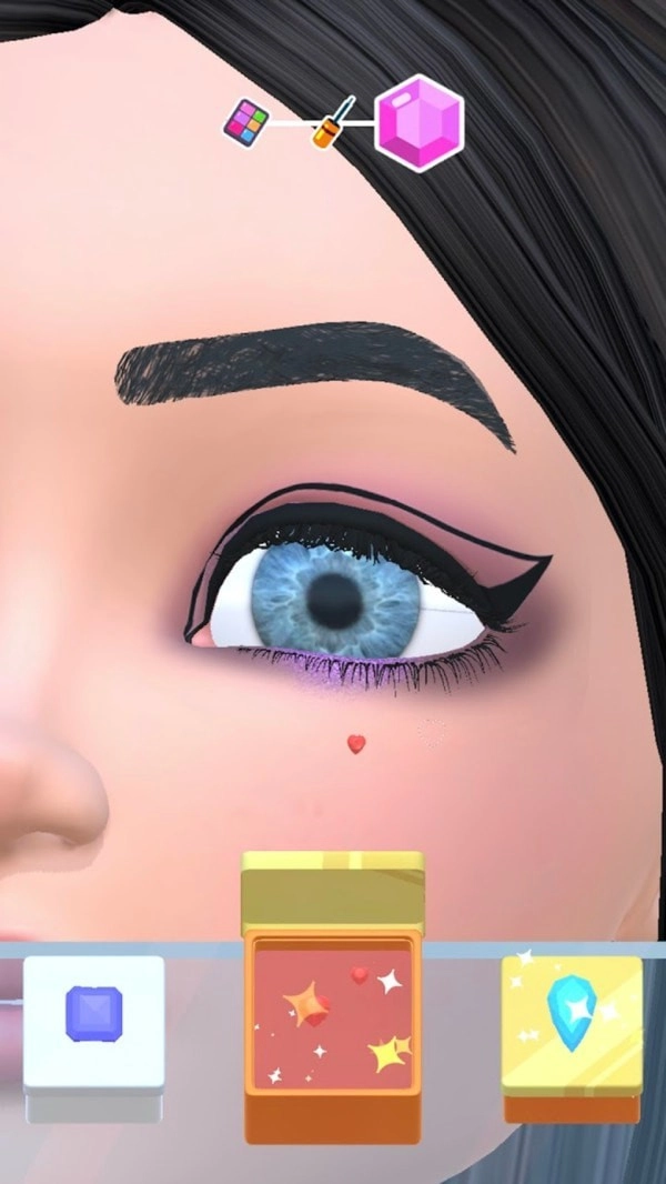 在幻彩眼影手机版里,需依据小人的眼睛为她绘制适配的眼影。